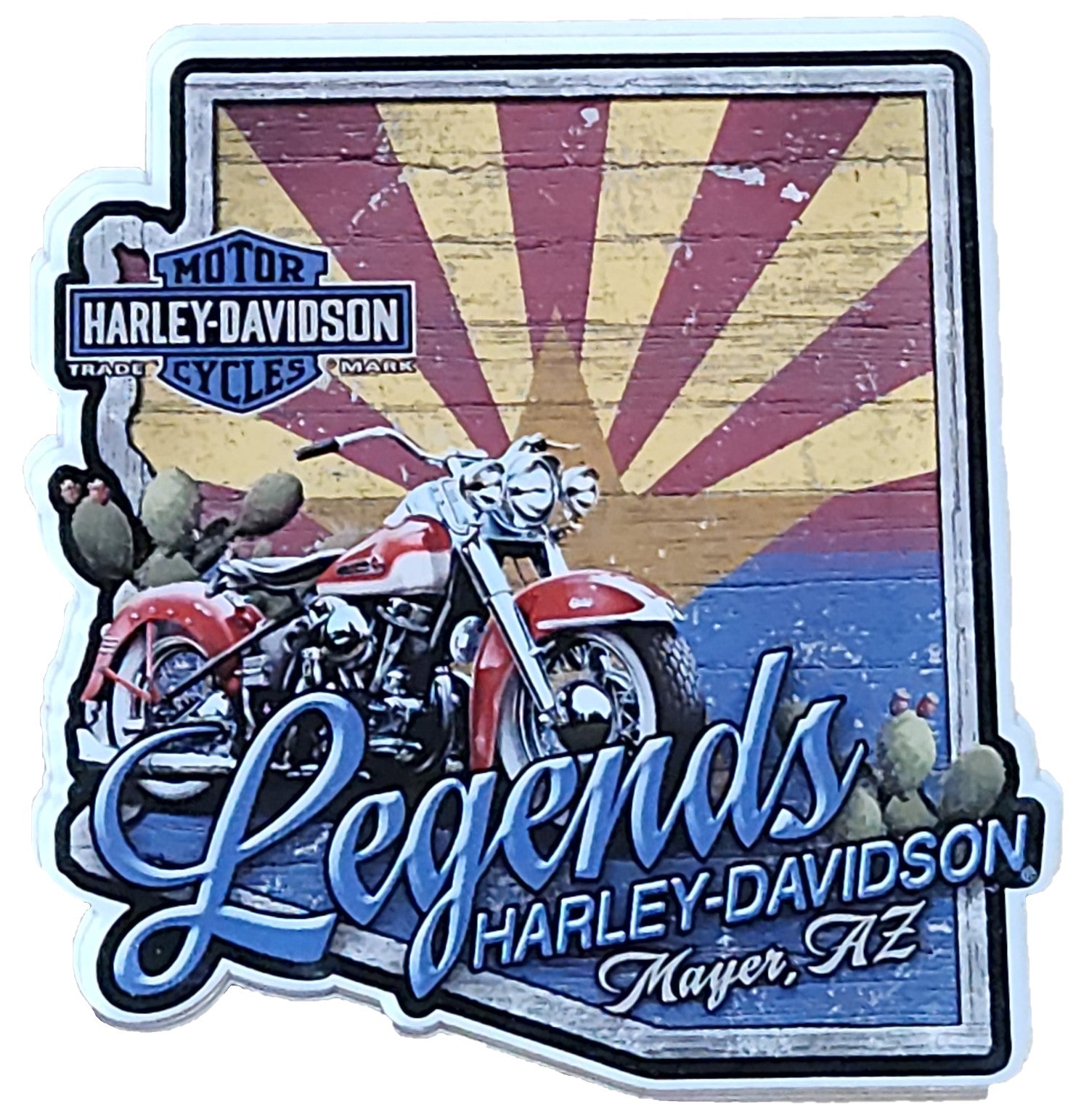 A Must Have for any collector or riding enthusiast. This magnet has our custom Legends H-D state flag logo design.